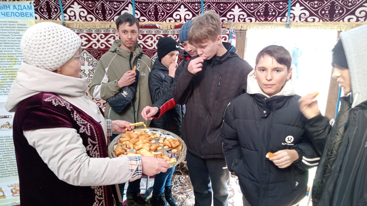Киіз үйдің кіреберісінде барлығына бауырсақтар мен тәттілер ұсынылды, қонақтар жарқын музей инсталляциясының аясында қуана суретке түсті.