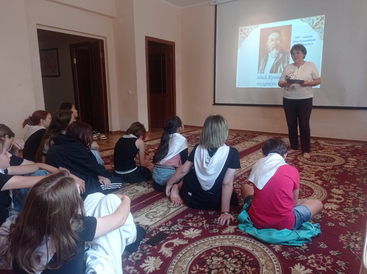 Балаларға ақынның өмірі мен қызметі туралы бейнефильм көрсетілді. Іс-шара соңында Абай шығармашылығы мен өмірін білуге арналған «Абай және оның дәуірі» викторинасы өткізілді.