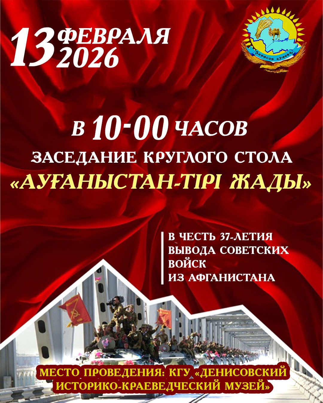 13 февраля 2026 года работники культуры района вместе с Отделом занятости и социальных программ акимата Денисовского района провели памятное мероприятие, посвященное 37-й годовщине вывода советских войск из Афганистана, главными участниками которого ста
