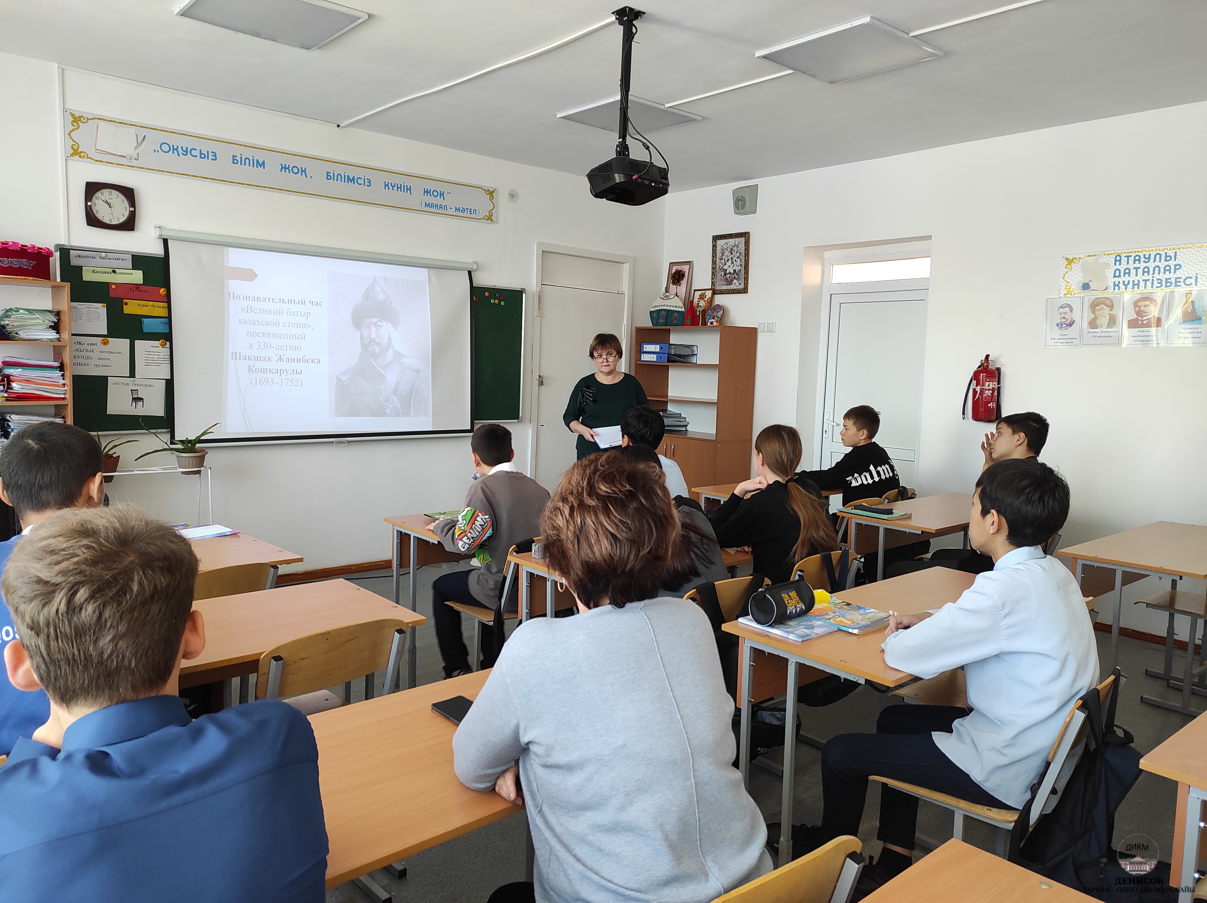 7 декабря 2023 года сотрудники Денисовского историко-краеведческого музея для учащихся  7 «Б» класса  Денисовской общеобразовательной школы № 2 провели познавательный час «Великий батыр казахской степи», посвященный к 330- летию Шакшак Жанибек Қошқарұлы (1693 – 1752).